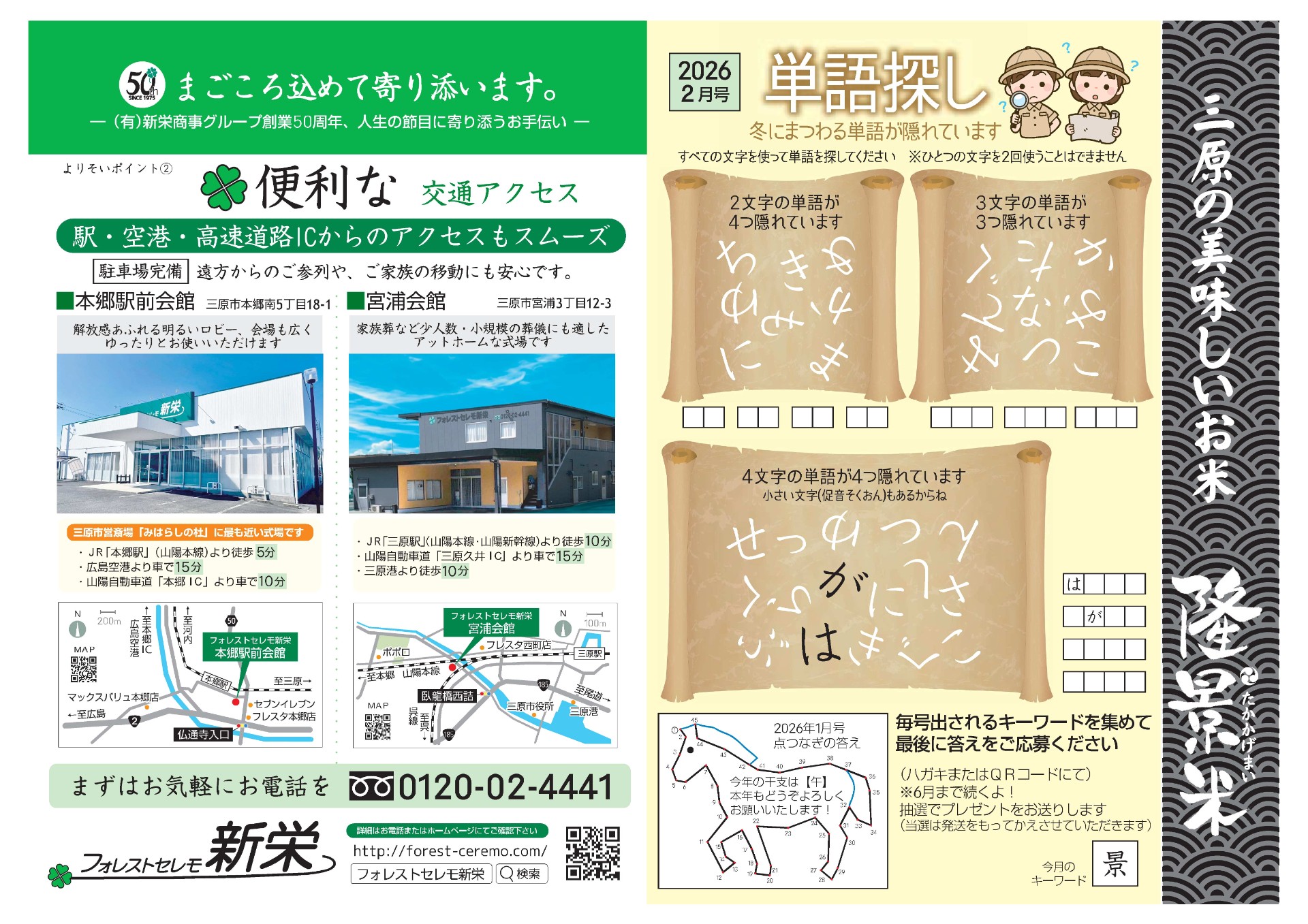 新栄通信2月号|三原市の葬儀場【フォレストセレモ新栄】では家族葬や地域葬などご希望に合わせたプランをご用意。いつでもご相談ください。
